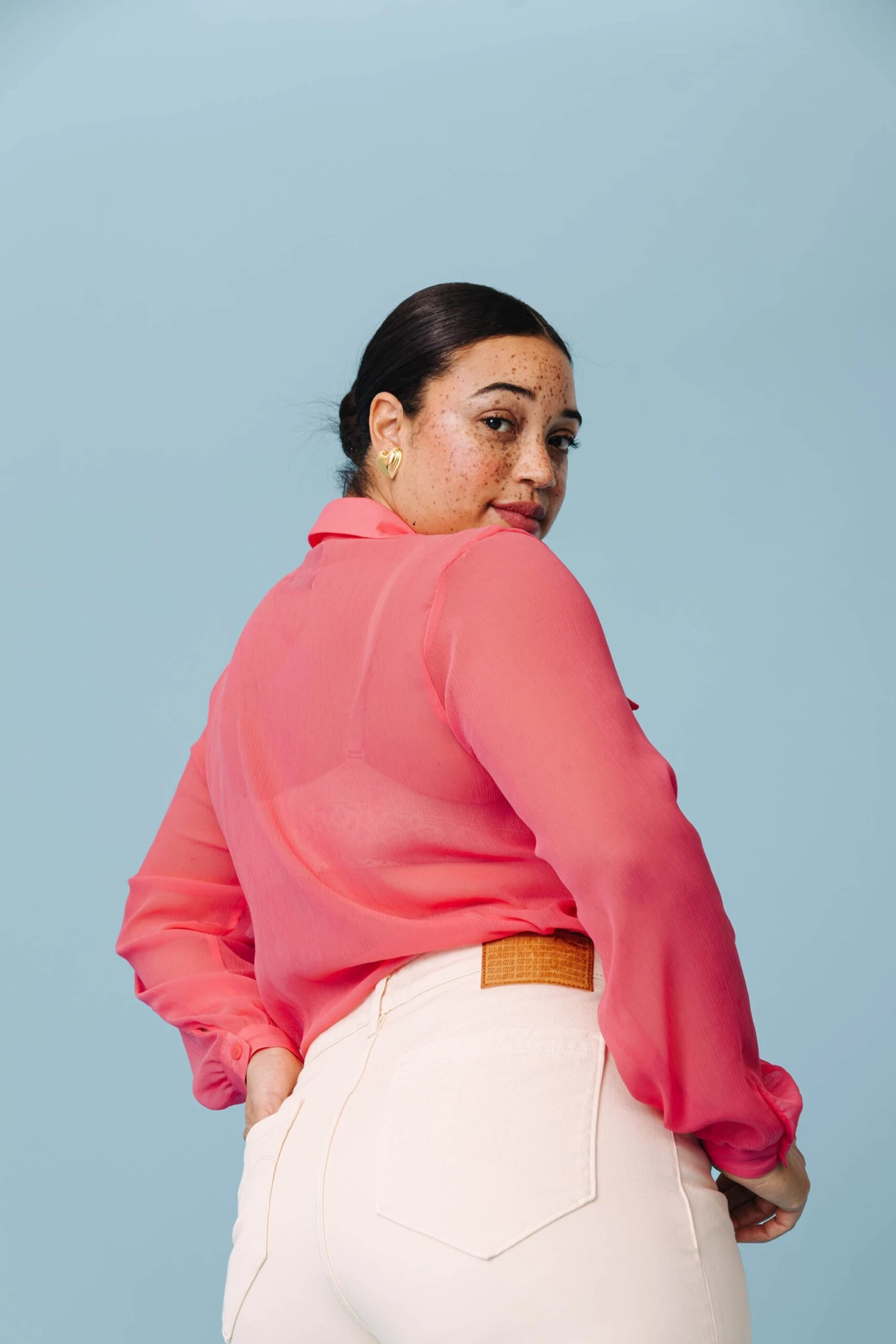 Rianne mesure 1m70, porte une taille 44, son tour de poitrine est de 109cm, de taille : 90cm et de hanches : 116cm