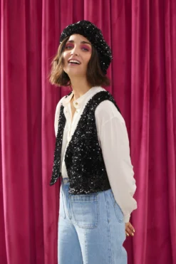 GILET ALI SEQUINS NOIRS